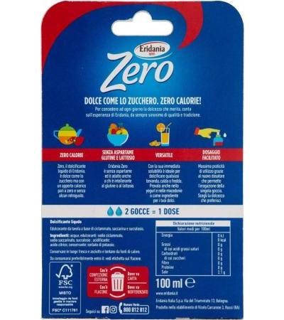 Жидкий подсластитель 100 мл — самый практичный формат линейки Eridaniza Zero. Упаковка полностью перерабатываемая, внешняя упаковка — картон FSC, бутылка пластиковая.