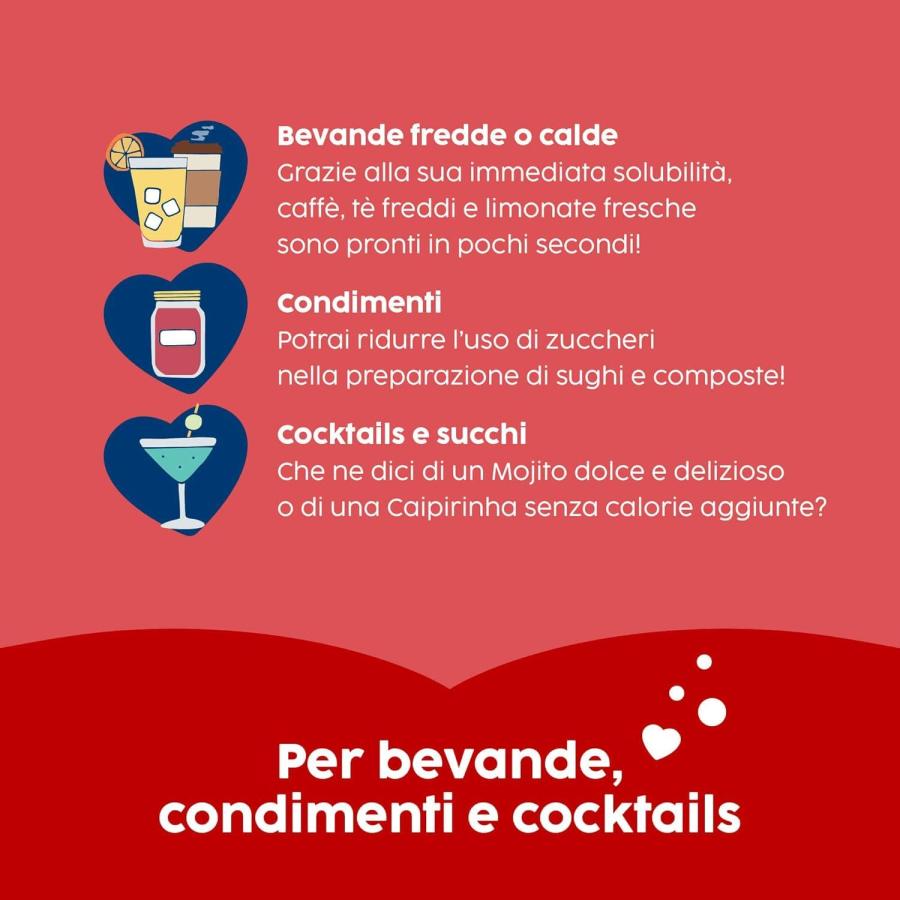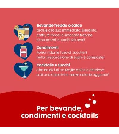 Благодаря мгновенной растворимости Misura Zero Liquido настолько универсален, что его можно использовать для холодных и горячих напитков, приправ, коктейлей и соков.