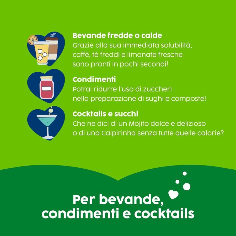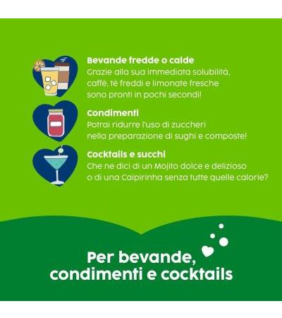- НАТУРАЛЬНЫЙ ПОДСЛАСТИТЕЛЬ: Этот подсластитель на основе стевии — альтернатива сахару с уникальной сладостью стевии, подсластителя с нулевым содержанием калорий, получаемого из листьев одноименного растения, произрастающего в горах Южной Америки.