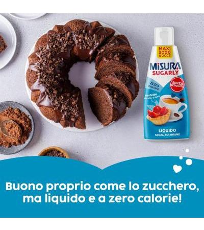 - Жидкий Sugarly Measure объёмом 205 мл эквивалентен 3,75 кг сахара. При приготовлении десертов вам понадобится всего лишь чайная ложка, чтобы заменить 100 г сахара. Вкусные десерты, быстрые, недорогие и без лишних калорий!